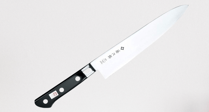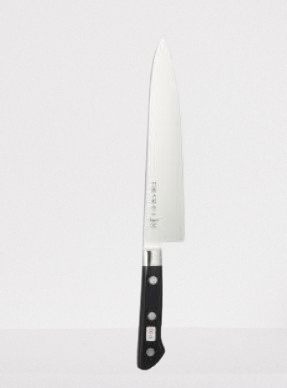About This Product: . 3 Layered Chef Knife with Steel Outer Layers . Blade Length 8.2 Inches . Item Length 14 Inches . Item Weight 7.4 ounces . Handle Material is Stainless steel . Made in Japan